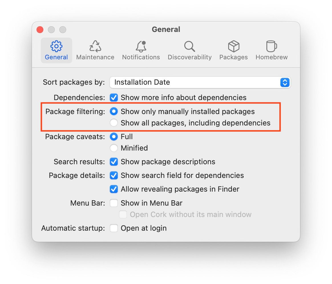 Backing up and restoring You can now filter out dependencies from the sidebar and Cork at large by default.