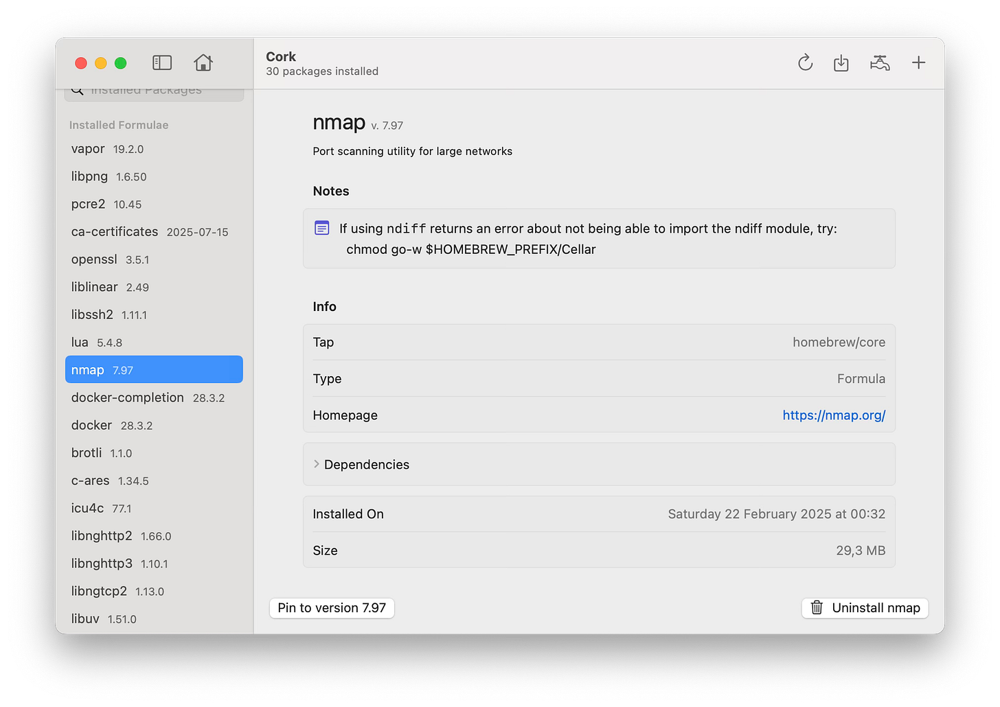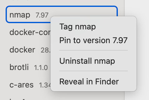 Pinning packages from the sidebar. I rewrote the system for pinning packages completely from scratch, because the Homebrew implementation was way too slow