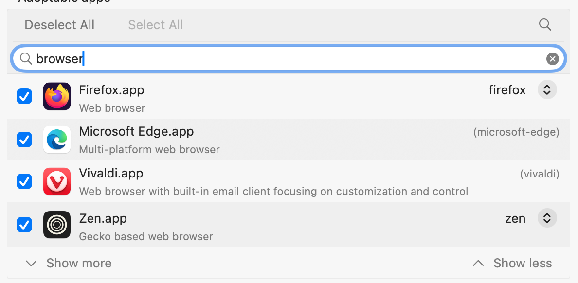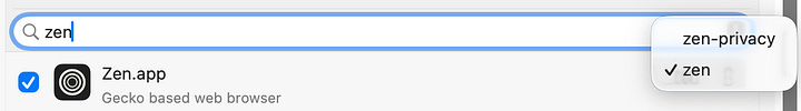Zen.appfor both the Zen Browser, and Zen Privacy screen), you can now select which package to adopt the app as. Previously, only the first one in the list was chosen, which led to some weirdness.